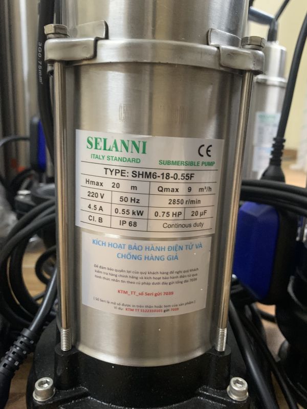 Bơm chìm nước thải Selanni SHm6-18-0.55F 0.55kw