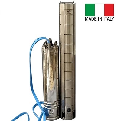 Máy bơm hỏa tiễn (hay còn gọi là bơm chìm giếng khoan) là loại máy bơm được thiết kế để đặt chìm trong giếng sâu hoặc giếng khoan để bơm nước từ các tầng nước ngầm lên mặt đất. Tên gọi "hỏa tiễn" xuất phát từ thiết kế hình trụ dài, mỏng của máy bơm, tương tự như hình dáng của một chiếc tên lửa (hỏa tiễn). Máy bơm hỏa tiễn 4SA16/25 nhập khẩu ITALY chuyên khai thác mạch nước ngầm giếng khoan, toàn bộ máy thả chìm trong nước đảm bảo 100% chất lượng, buồng và động cơ vỏ ngoài làm bằng inox 304 chịu ăn mòn chống hoen rỉ tốt. Hãng chúng tôi có buồng cánh FIP nhựa và buồng CÁNH INOX chịu áp lực tốt.