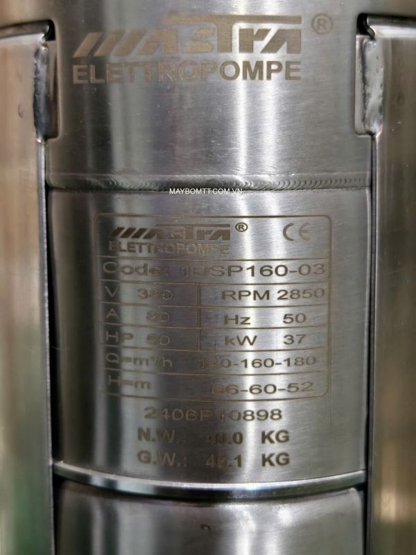 Máy bơm chìm giếng khoan Mastra 10SP160-03 37kw bảo hành 24 tháng đổi mới trong 30 ngày. Giao hàng toàn quốc, miễn phí vận chuyển, hỗ trợ lắp đặt 24/7.
