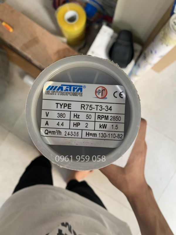 - Đối với máy bơm Mastra R75-T3-34 1.5kw thân 76 mm thì sẽ sử dụng cho giếng khoan đường kính ống 90 mm.