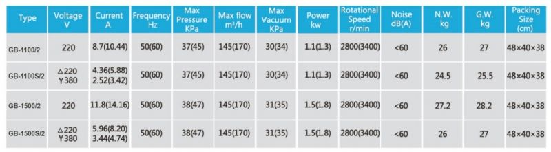 THÔNG SỐ KỸ THUẬT MÁY THỔI KHÍ CON SÒ 2 TẦNG CÁNH GB-1100/2 1.1KW