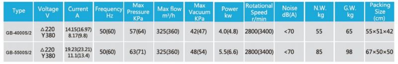 THÔNG SỐ KỸ THUẬT MÁY THỔI KHÍ CON SÒ 2 TẦNG CÁNH GB-4000S/2 4KW