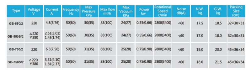 THÔNG SỐ KỸ THUẬT MÁY THỔI KHÍ CON SÒ 2 TẦNG CÁNH GB-550/2 550W